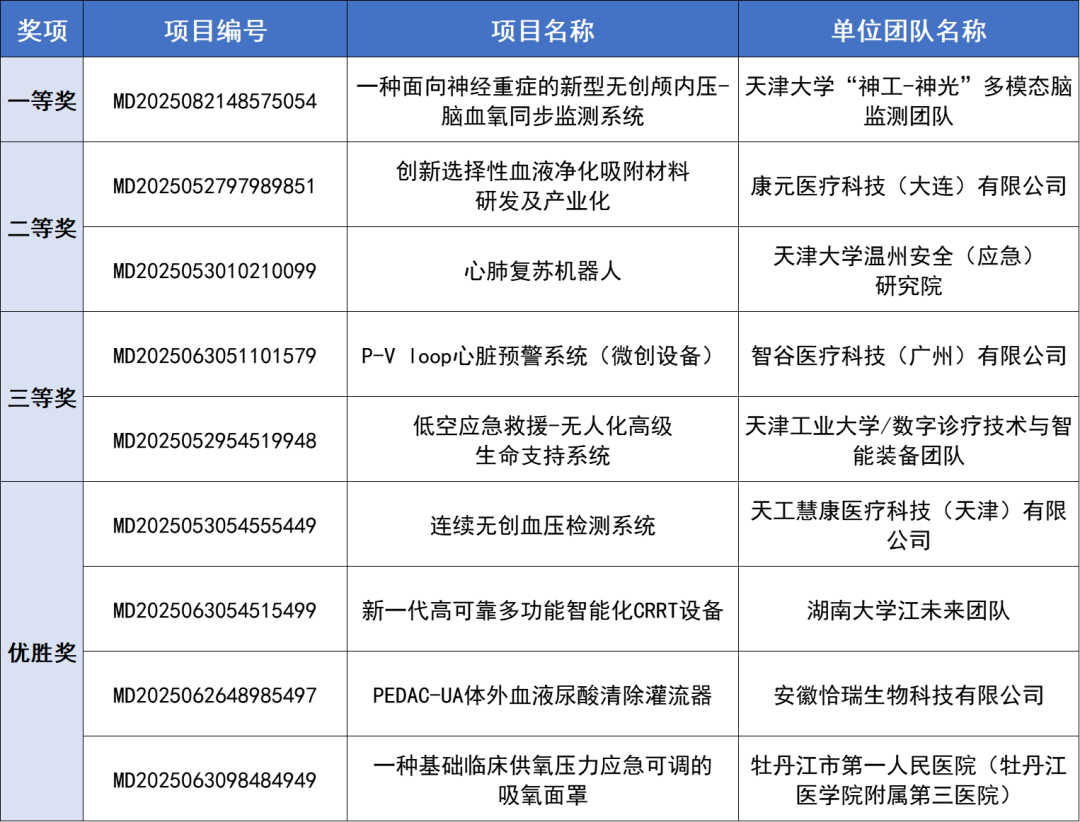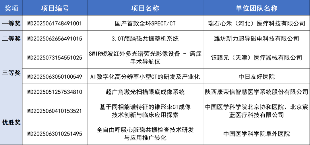 本场诊疗设备类别赛(大型诊疗设备)评选出了一等奖1名、二等奖1名、三等奖3名、优胜奖2名。